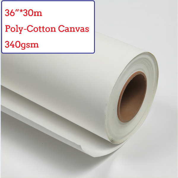 【Poly-Cotton Blend Canvas】Poly-cotton blend canvas combines the properties of both cotton and polyester fabrics, offering a balance of durability, color reproduction, and texture. It is a versatile option that can provide the best of both worlds in terms of image quality and stability. Poly-cotton blend canvas is suitable for a wide range of applications, from fine art prints to commercial displays and advertising materials.